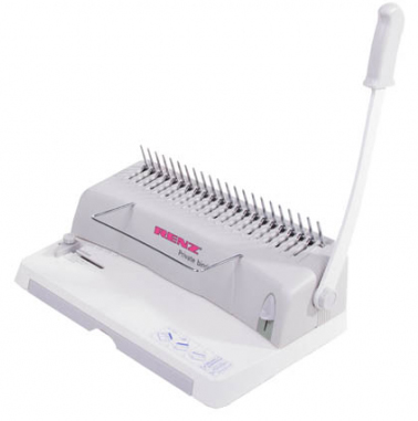 Переплетчик RENZ Private Bind - это переплётчик с возможностью скрепления на пластиковую пружину документов формата А4, объёмом до 300 листов. Подходит для малых объёмов работ. Оснащен ручной перфорирующей системой пробивающей одновременно до 10 листов офисной бумаги 80г/м.кв. Относиться к непрофессиональному типу, имеет неотключаемые тип ножей, и нерегулируемую глубину перфорации.