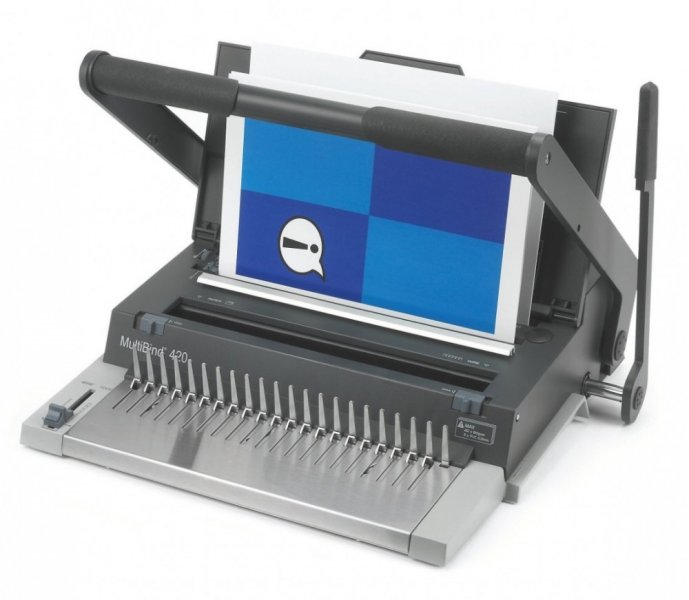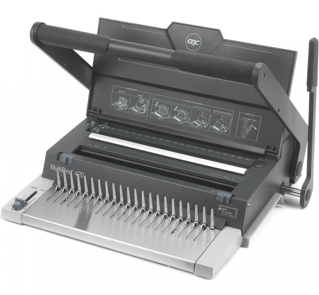 Переплетчик комбинированный GBC MultiBind 420 – это многофункциональный переплётчик с возможностью скрепления на пластиковую и на металлическую пружину документов формата А4/А5. Оснащен ручной перфорирующей системой на 20 листов и позволяет скреплять до 125 листов на металлическую и до 450 листов на пластиковую пружину. Имеет механизм автоцентрирования и разделения листов.