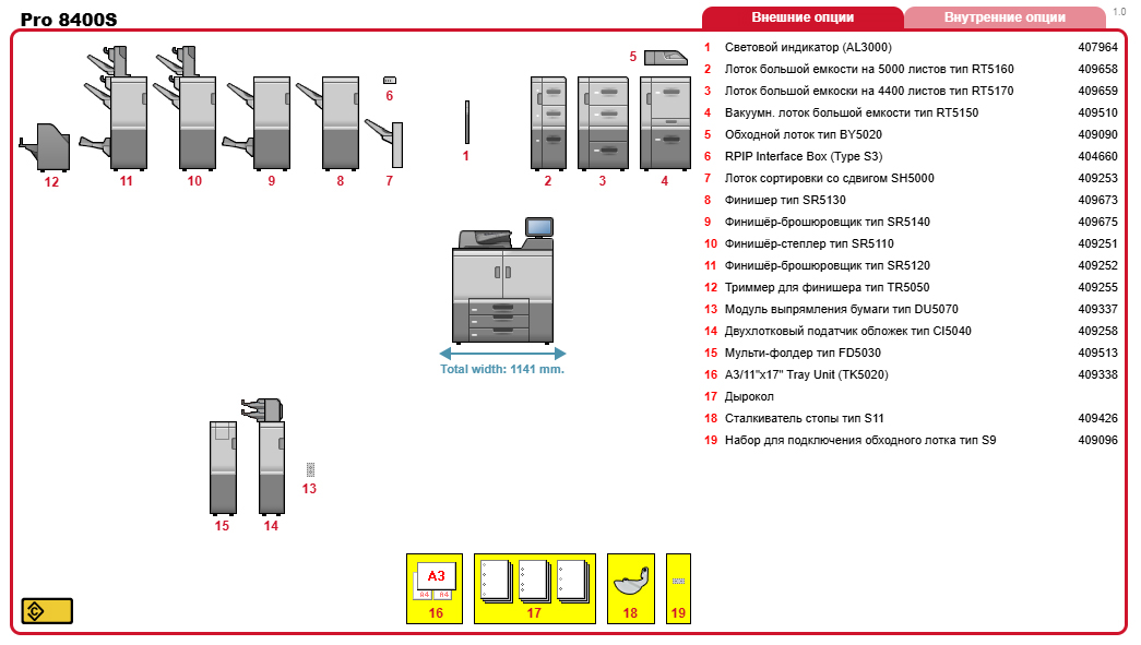 Опции системы вывода бумаги для RICOH Pro 8400S: