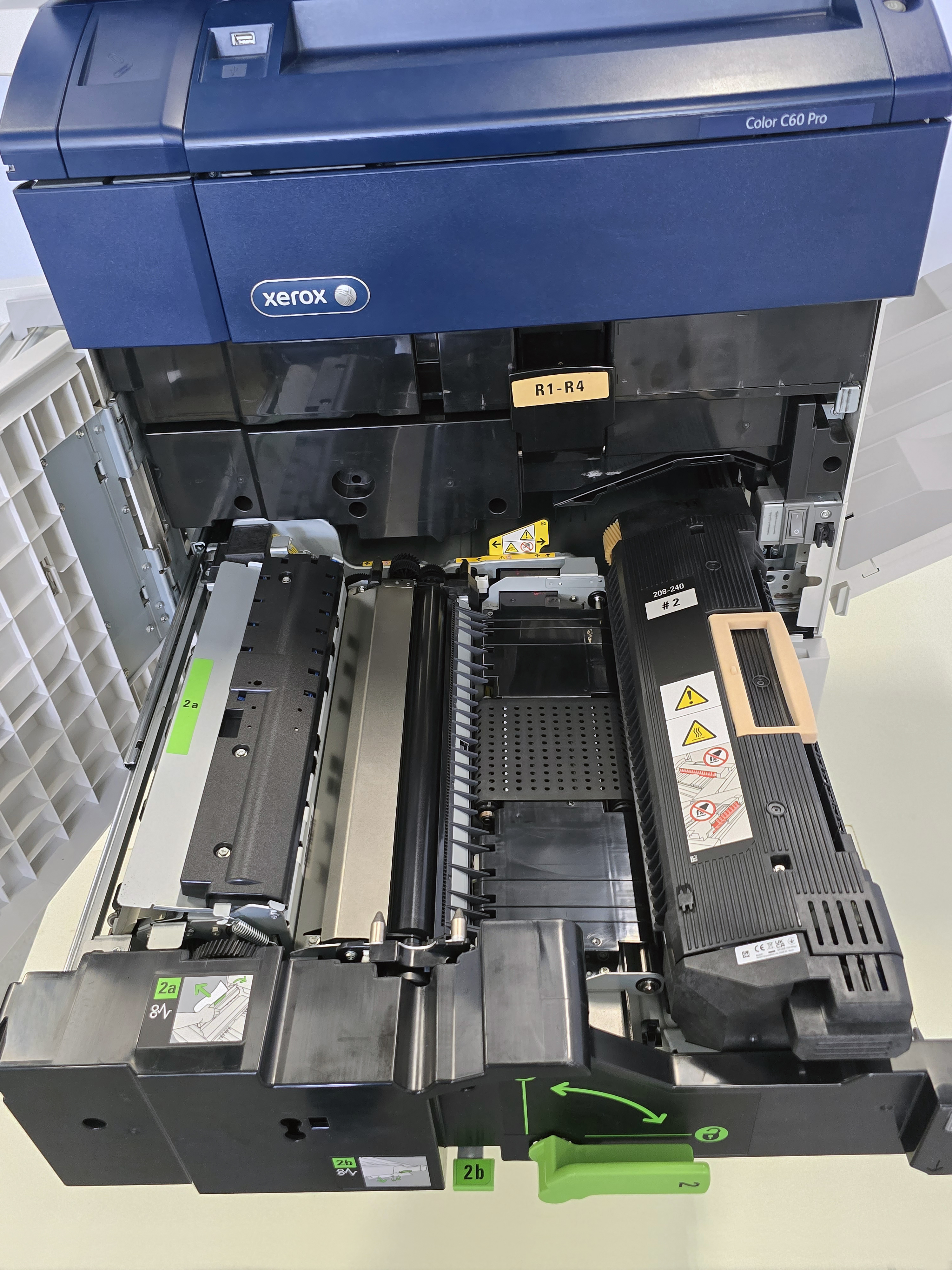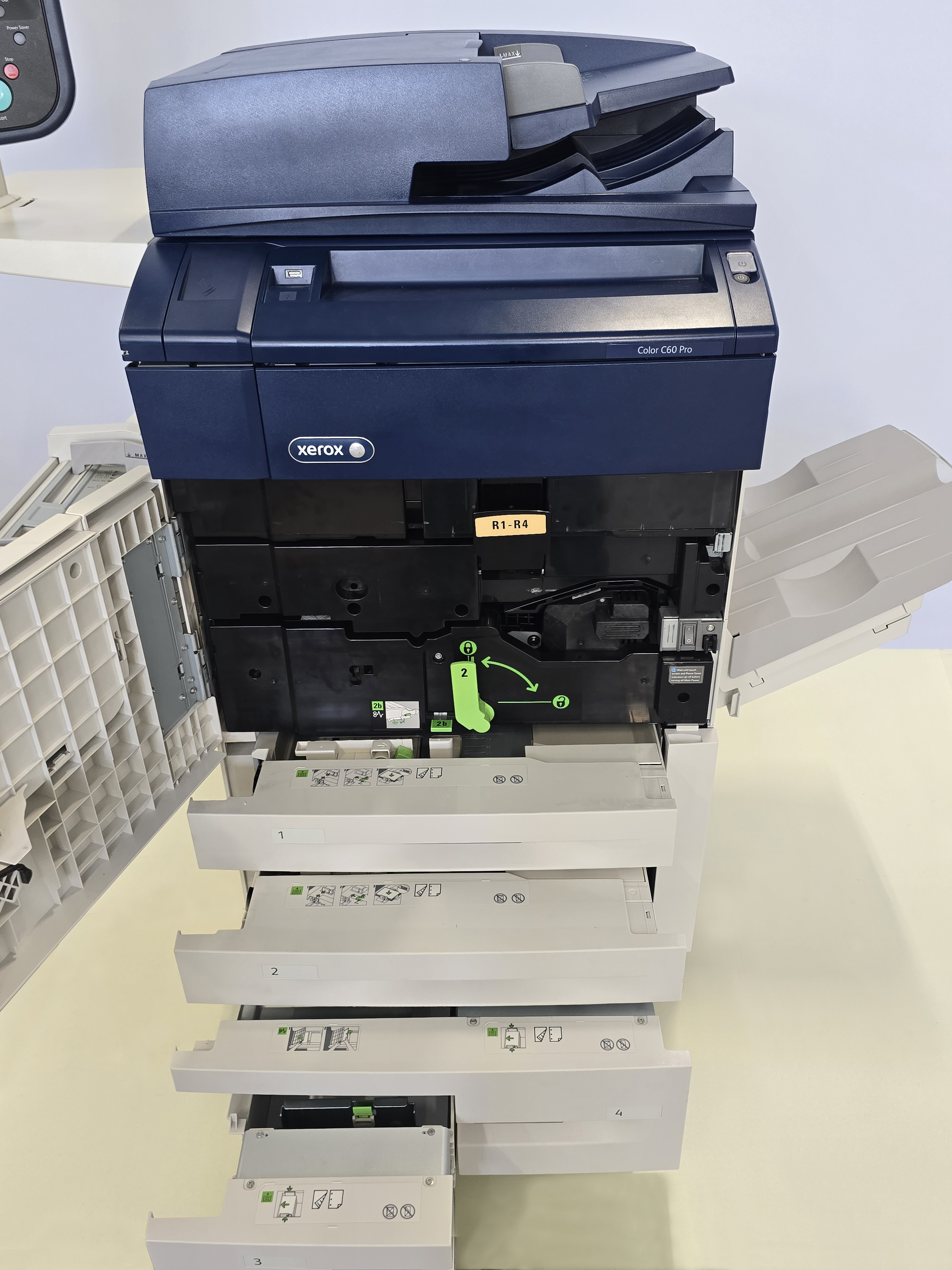 В аппарате Xerox Color C60 реализована концепция блоков Smart Kit, заменяемых оператором (без участия сервисного инженера Xerox) – ряд блоков – блоки барабанов, фьюзер, узел коротрона заряда и сборник отходов – оформлены как Smart Kit – и могут без особого труда установлены/заменены в МФУ, благодаря чему время возможных простоев из-за замены или ремонта сведено к минимуму. В машине одновременно могут быть установлены 5-ть картриджей (стандартная схема CMYK, с установкой двух чёрных картриджей, ввиду как правило большего расхода чёрного тонера).